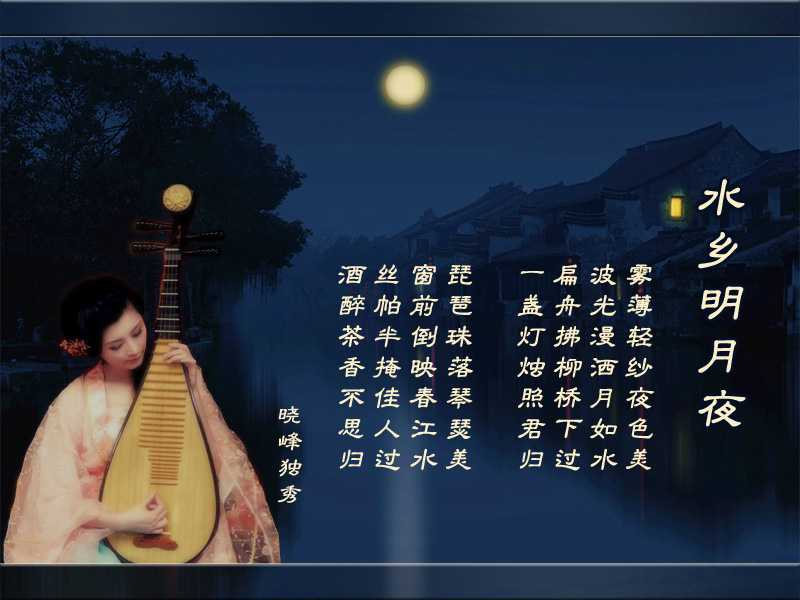 琵琶声起琴瑟阵阵,慢慢引出大小葫芦丝此起彼伏交相呼应,一幅江南水乡的月色夜景浮现眼前: 水乡薄雾似轻纱,水乡两岸是人家; 一首由彭万雄作曲,易武老师配器,发表在PPF(谱谱风)专业制谱论坛原名为“水月亮”的歌曲,被论坛大笨虫发现并推荐给我,提议改编成葫芦丝曲。 经过反复推敲和实践,我们最终选用了二重奏的演奏形式,感觉更富有层次和表现力:大葫芦丝低沉浑厚如雾似云若沉夜漫漫,小葫芦丝灵转飘逸如月似水若琴声瑟瑟;轻雾沉夜、水光月波,情景交融地为我们展现出了水乡月夜的动感之美。 这首葫芦丝曲易老师听后非常喜爱,给予极大的肯定鼓励和支持,特意抽出时间为我们这首葫芦丝曲重新编配了适合葫芦丝演奏的新伴奏。在此我们向易老师表示由衷的感谢!同时也向论坛所有一直以来鼓励和支持我们的各位老师和朋友们致敬! 乐曲运用了波音、虚指颤音、上下滑音、叠滑音和腹颤音等基本技巧,演奏时大小葫芦丝注意压稳节奏,配合默契并注意乐段较强较弱应用提示。 ——少数民族乐器网 音乐评论员 晓峰独秀