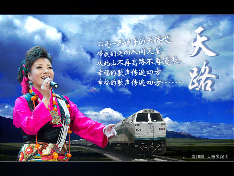 一首深受大家喜爱的歌曲《天路》穿越青藏高原的蓝天祥云、青青牧场和高高山岗;唱出了人民的勤劳勇敢,送来了酥油茶的清香,翻山越岭的铁路犹如巨龙,把温暖吉祥安康送到边疆,带我们走进人间天堂;从此山不再高路不再长,幸福的歌声传遍四方!