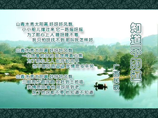 广西民歌改编的葫芦丝曲《知道不知道》是首老曲子了,其葫芦丝伴奏本站早就提供了,一直忘记在主站加上伴奏,配套的示范也是小静吹奏的,希望大家喜欢,别看是05年的,但也特别好听