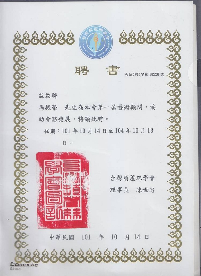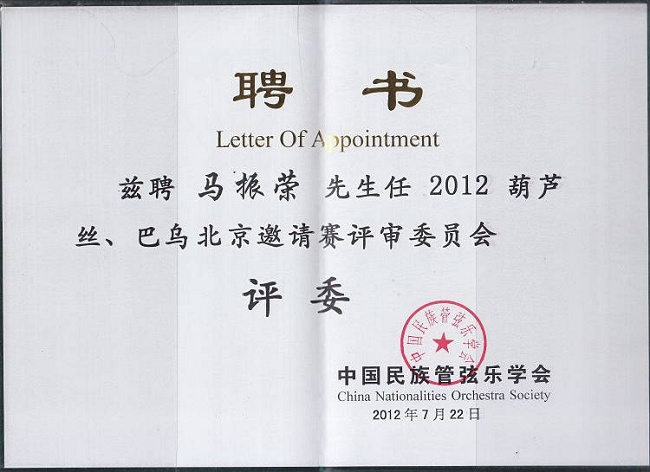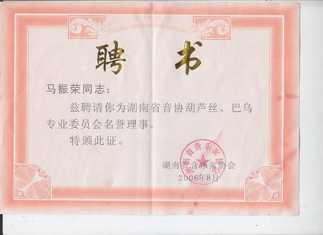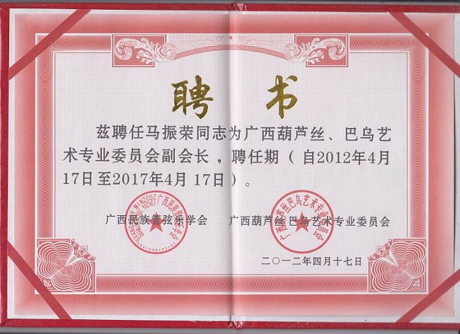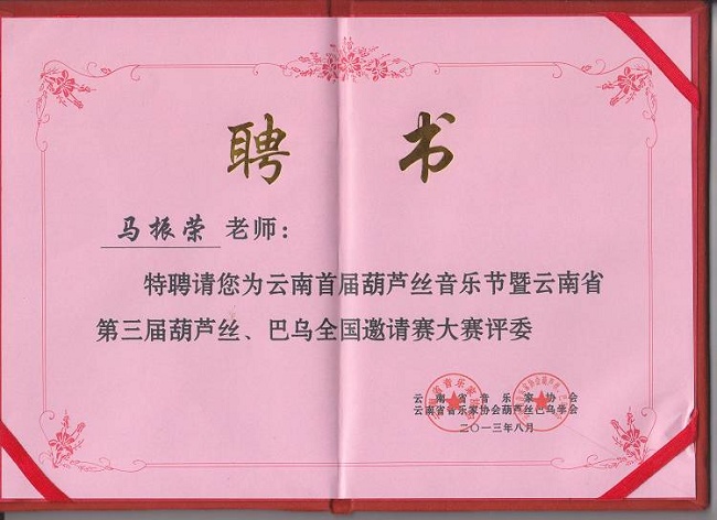 --2011南京胡晓葫芦丝音乐会组委会成员 --云南省民族乐器研究会常务理事 --湖南省音协葫芦丝巴乌委员会名誉理事 --台湾葫芦丝巴乌委员会艺术顾问 --鸡西大学葫芦丝巴乌研发中心研究员 【少数民族乐器网】【葫芦丝专业论坛】为: --2010年广东首届葫芦丝?巴乌2010全国邀请赛协办单位 --2011年山东潍坊魏仕健个人作品音乐会协办单位 --2011年云南全国葫芦丝大赛特约媒体网站 --2011年中国-广州纪念哏德全葫芦丝国际邀请赛协办单位 1976年马振荣先生出生在一个芦笙制作世家。他自幼学习芦笙、竹笛、苗笛、洞箫、葫芦丝及巴乌等乐器的演奏及开发研制;曾多次到访云南地州县采风,探索少数民族艺术文化的种类、起源及其发展;收集民间稀有乐器品种并研究其演奏方法和表现形式;特别钟情葫芦丝、巴乌这一源于少数民族的乐器,从演奏到制作以致后来的宣传推广,都具有极大的兴趣、独到的见解和很高的热情。